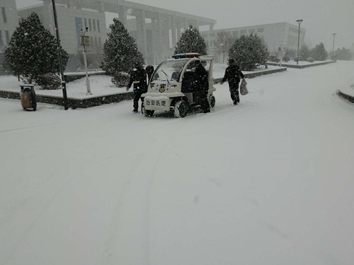 倏忽銀臺搆,俄頃玉樹生。1月15日,2019年第一場雪籠罩了峽山區創新創業服務中心園區。為業主和辦事群眾出行安全,峽山片區管理處啟動極端惡劣天氣應急預案,主動響應,頂風冒雪,以保安保潔為尖兵,分路段開展掃雪除冰工作。