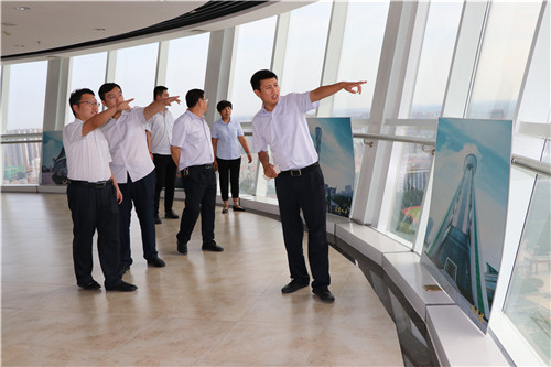 隨后,實地考察了監控室,強電間,消防泵房等設備間;觀覽了137米高塔,一覽濰坊市貌。